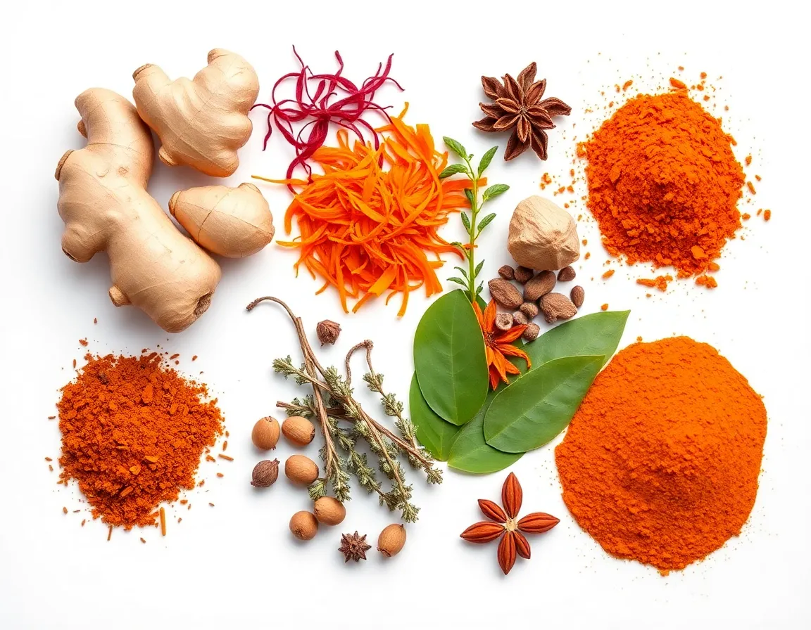 Ginger, saffron, turmeric (curcuma), thyme, bay leaves, curry and other spices — Saffron